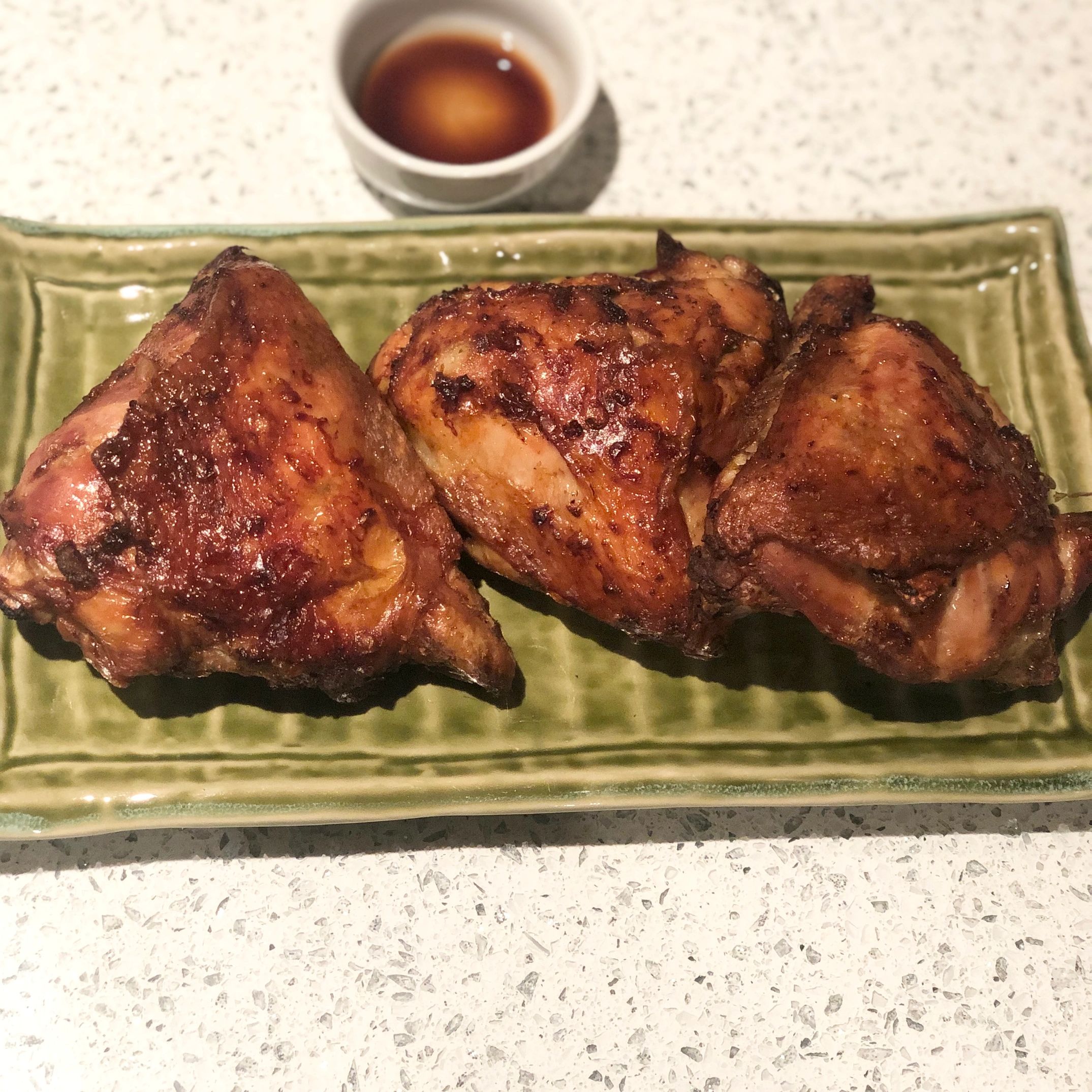 5. Flip chicken thighs when golden brown (about 12 mins) and continue until skin looks nice and crispy.